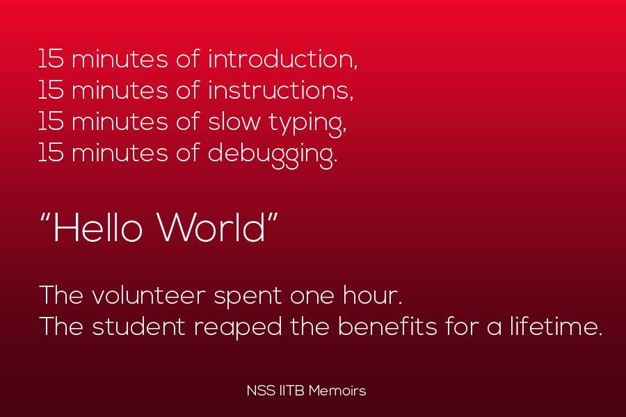 Every volunteer contributes significantly in the execution of the widespread activities of NSS. Throughout this journey, there are several moments of joy for our volunteers which they relish for the rest of their lives. We have compiled some of them in the form of the memoirs. Do give a read!