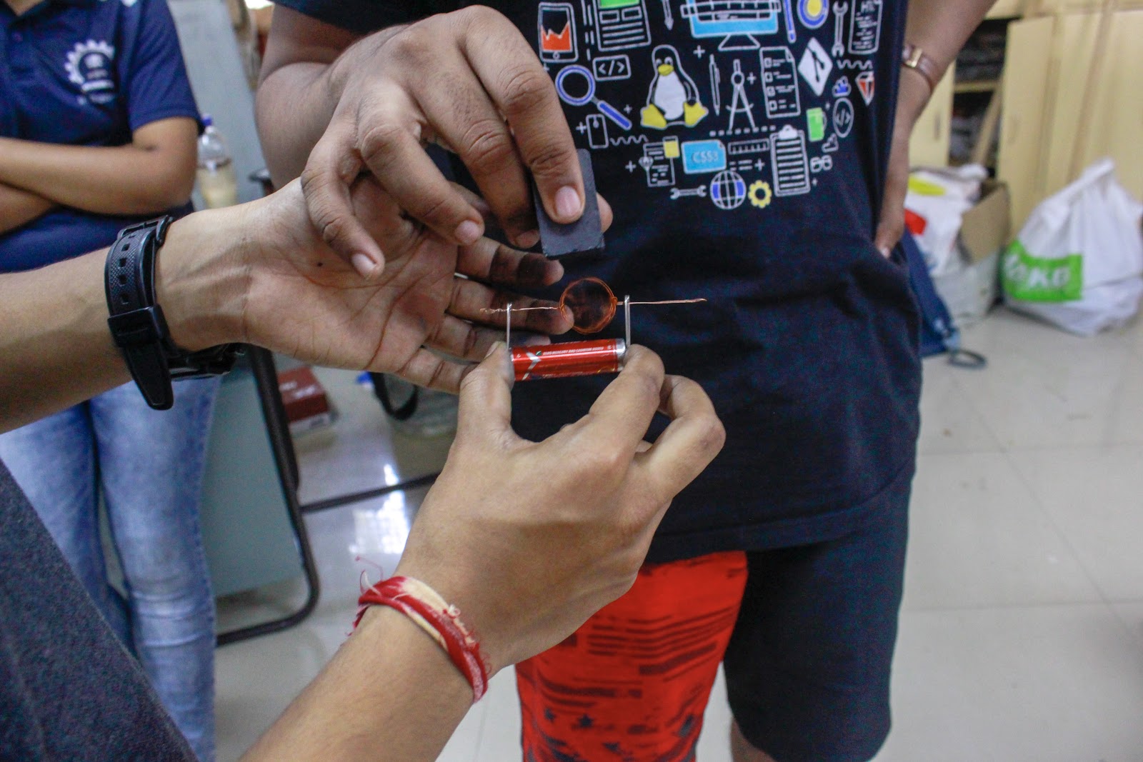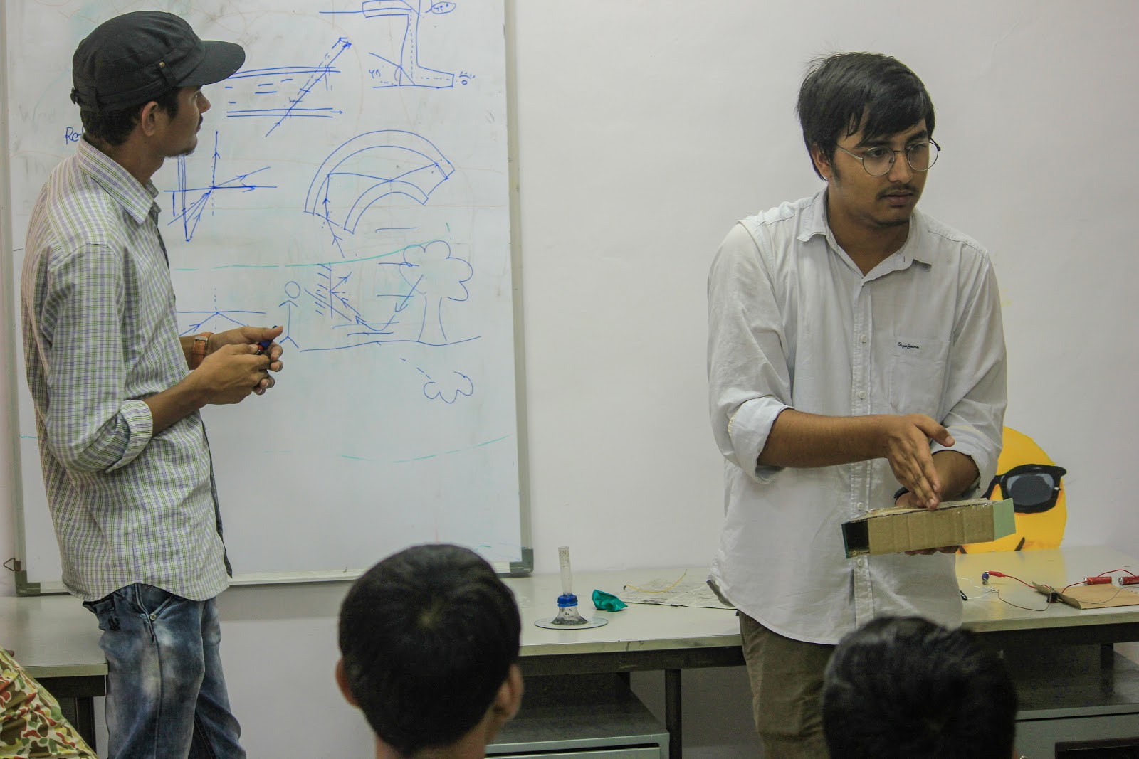 Prayog was started with a belief that science is better understood by demonstration. Our aim is to instill scientific temperament among the students by the means of simple, yet interesting and informative scientific experiments. The students get a chance to perform the experiments themselves after the demonstration. Also, care is taken to ensure that the experiments are performed with readily available apparatus so that the students can easily replicate them when they go home. All the experiments are followed by an explanation of the scientific principles on which the experiment is based. We included mental ability section this time with quizzes and puzzles and fun activities. This year the students were also taken to various technical exhibitions inside the IIT campus to ignite their curiosity and inspire them towards science.