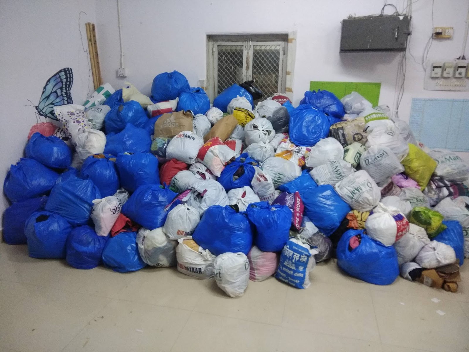 As the name suggests, the initiative acts as a link between the donation-interested people in the institute to the beneficiaries by donation of clothes from the former to latter. As the flagship activity of the Events Department, the Cloth Collectin Drive(CCD) is held over the course of the complete academic year. It is further broken down to 2 phases- Phase 1, held in October involves collection from the student hostels, which includes making of interactive donation boxes by the volunteers, putting them up in visible, common areas in each hostel followed by regular collection of the donated items. Phase 2, held in March, is conducted in the professor residences, the volunteers are divided into specific groups and allotted specific areas, where at first publicity posters are put up, followed by 4-5 visits in the areas to collect clothes from the interested people. In both the phases, segregation and sorting of clothes are done by the volunteers itself. The activity is most enjoyed by volunteers as they themselves are responsible for all the collection, the sorting and the donation activities done in the initiative. This year, the initiative, especially Phase 1 witnessed a huge growth in terms of the volume of clothes donated. The phase 1 donations were again carried out in the slum areas of Ambernath, with the help of The Front Labour Union, over the course of two visits. The head of the front labour union said the following about our initiative: