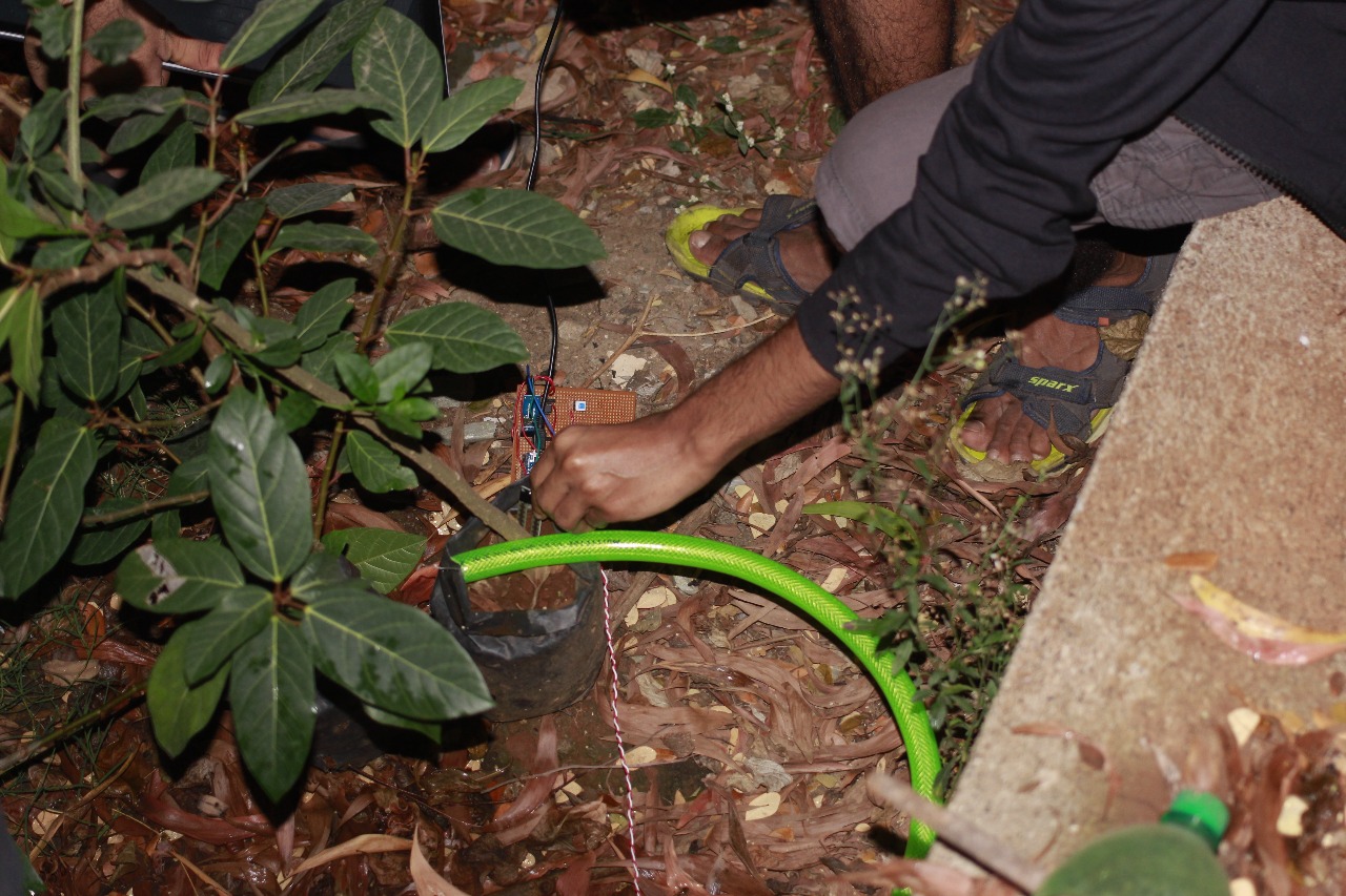 We have implemented our working prototype in NSS nursery to observe the changes with respect to other manually irrigated plants and to have an insight of moisture requirements of plants.Currently, we are probing the possibilities of implementing our prototype in Hostel Gardens of IITB and also working to scale up the use of our device over a larger area with more sensors.