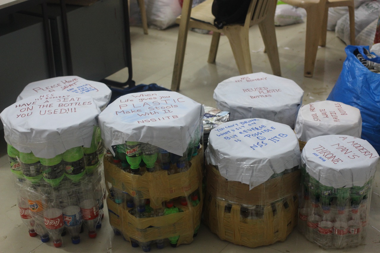A large number of flex banners are used in the institute throughout the year. We innovatively came up with some ideas of reusing these waste flexes. These were collected by our volunteers and were made into sapling covers and flex carry bags. Flex bags were distributed in the campus shops whereas the sapling covers rest in peace in the NSS nursery caressing tender saplings. Apart from these, we also made stationary pouches to be used by kids.